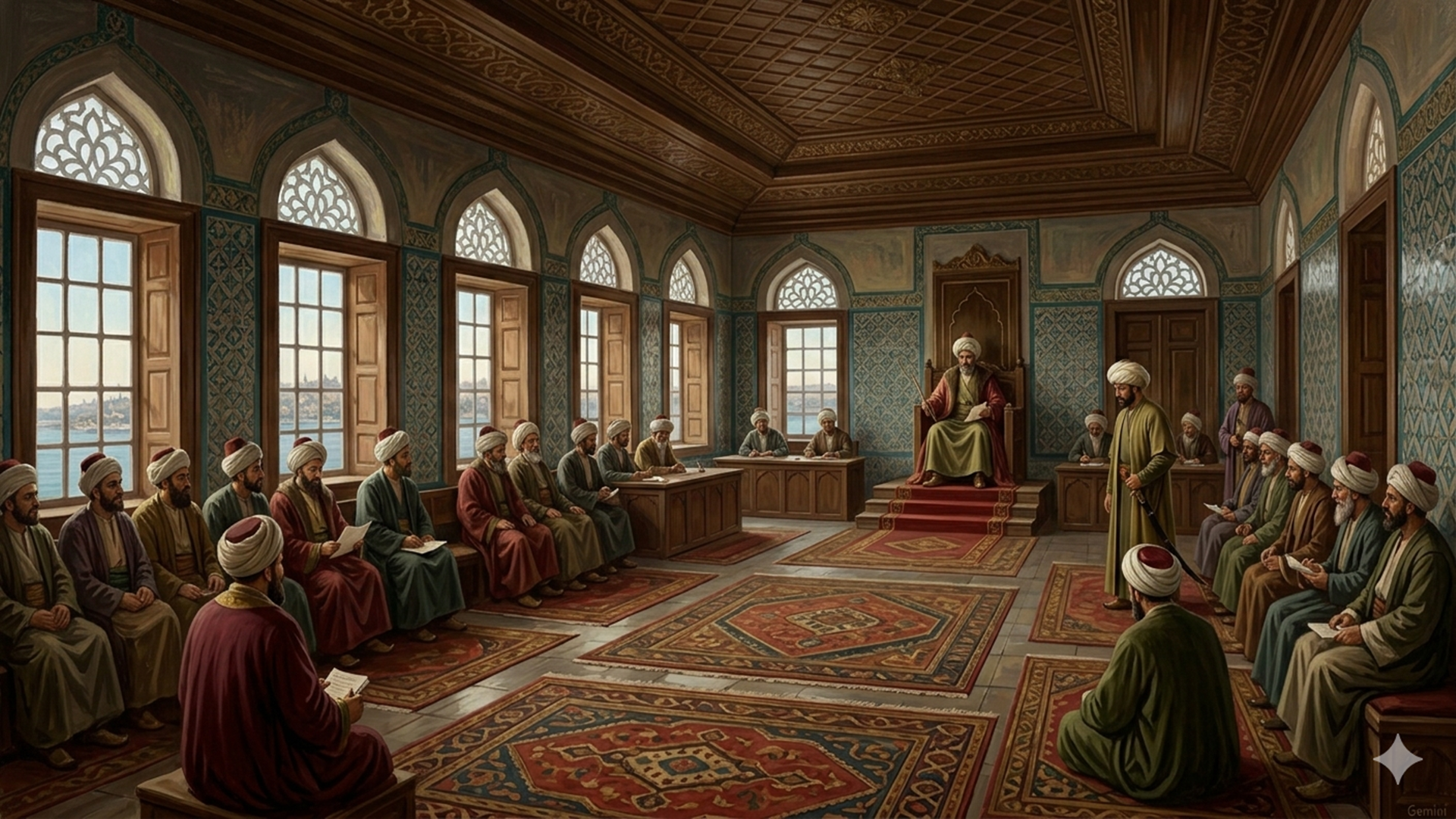 Zamanın ulu hükümdarı Harun Reşid, bir Cuma sabahı Bağdat sokaklarında cümbüşüyle ilerlerken, şehirden uzakta, selvi ağaçlarının gölgesinde hüzünle yatan o meşhur mezarlığa gözü takıldı. İşte tam o sırada, o manevi huzurun içinde, dünyadan yüz çevirmiş, dervişane giysileriyle, toz toprak içinde bir taşın üzerine çökmüş kardeşi Behlül Dâne'yi gördü. Harun Reşid, ihtişamlı atının üzerinde, sırtında görkemli pelerini, başında padişah kavuğuyla mezarlığın girişinde durdu. Yüzünde hem şaşkınlık hem de derin bir düşünce ifadesi belirdi. Atından inmeden, kardeşine doğru takılarak sordu: